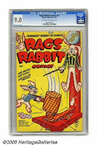 <B>Rags Rabbit Comics #11 (Harvey, 1951) CGC VF/NM 9.0 Light tan to off-white pages.</B></I> First issue of the title. From the Harvey files. Overstreet 2005 VF/NM 9.0 value = $38; NM- 9.2 value = $45. CGC census 3/05: 1 in 9.0, none higher.