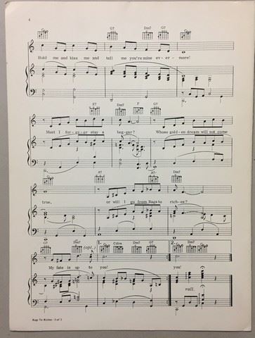 Signed copy of sheet music for "Rags to Riches", words and music by Richard Adler and Jerry Ross.