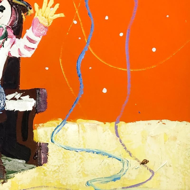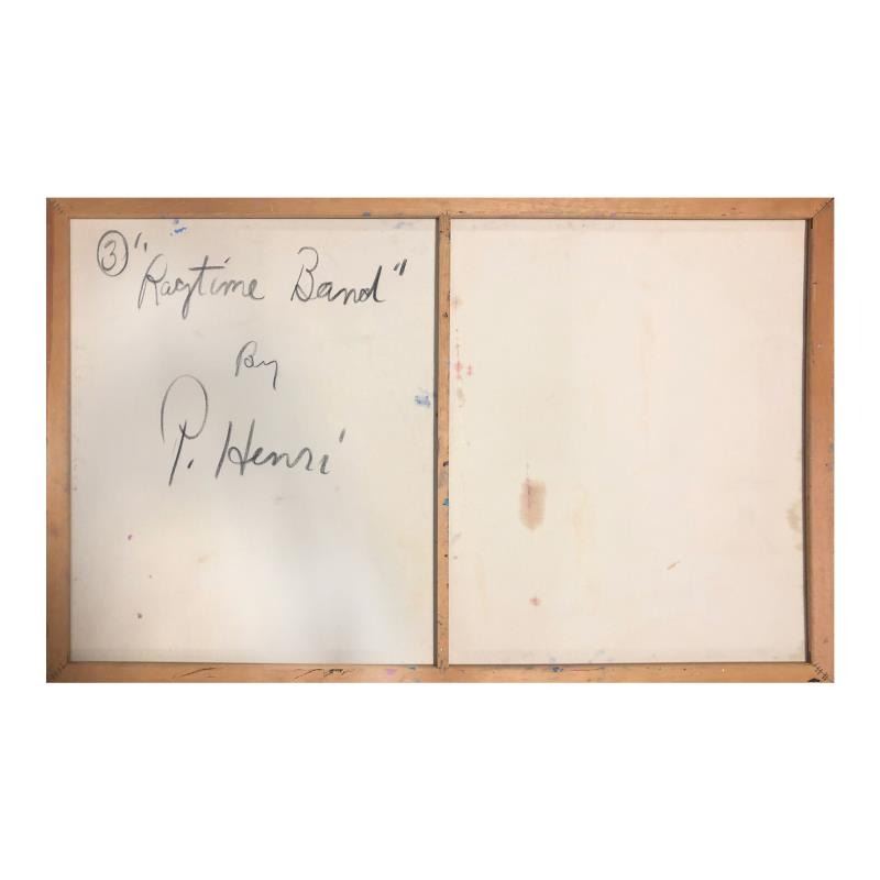 "Ragtime Band" is an original oil painting on stretched canvas by Paul Blaine Henrie (1932-1999). The piece is hand signed by the artist and comes with a letter of authenticity. Please note that due to the age of this piece and the way it was stored, ther
