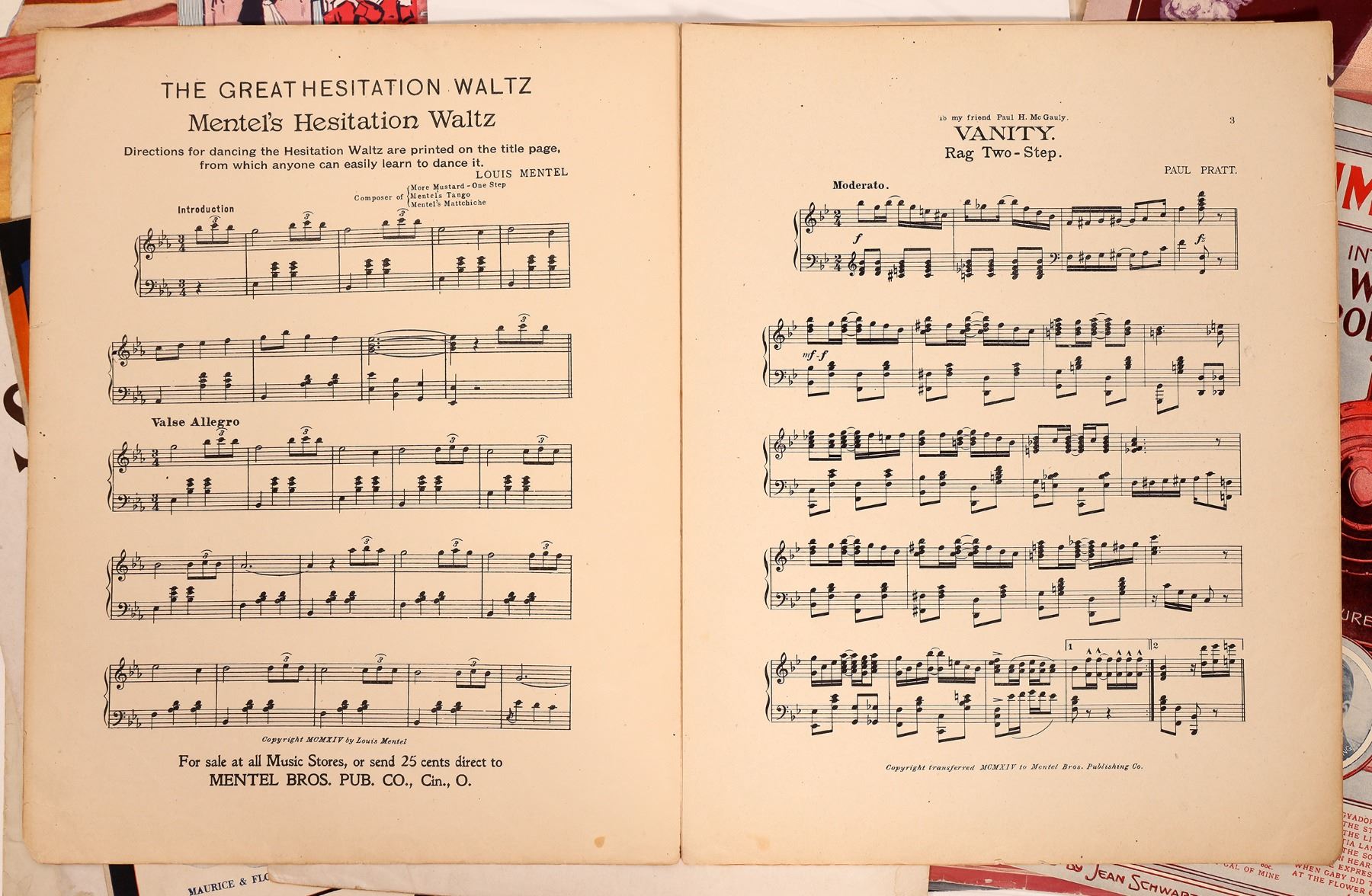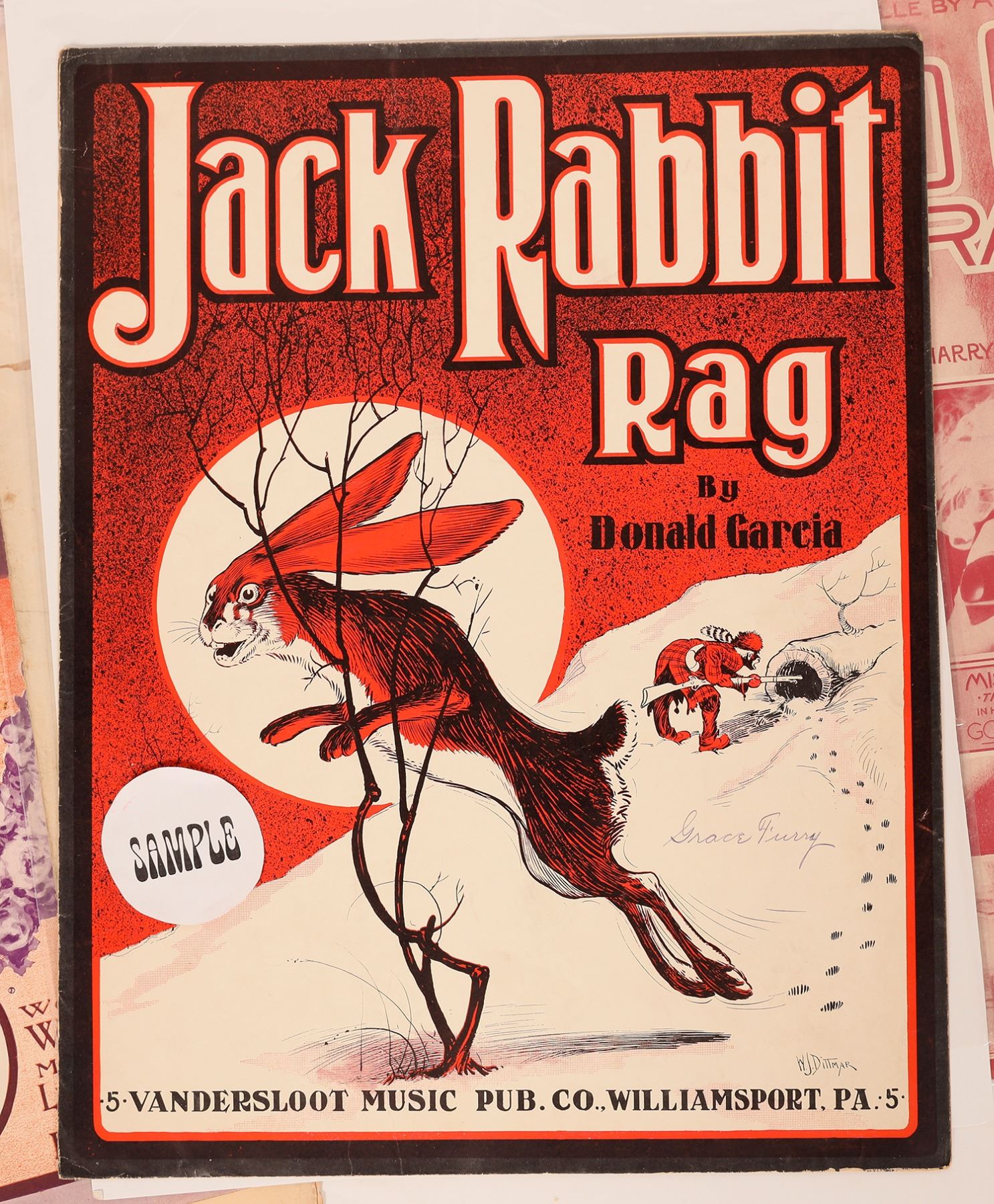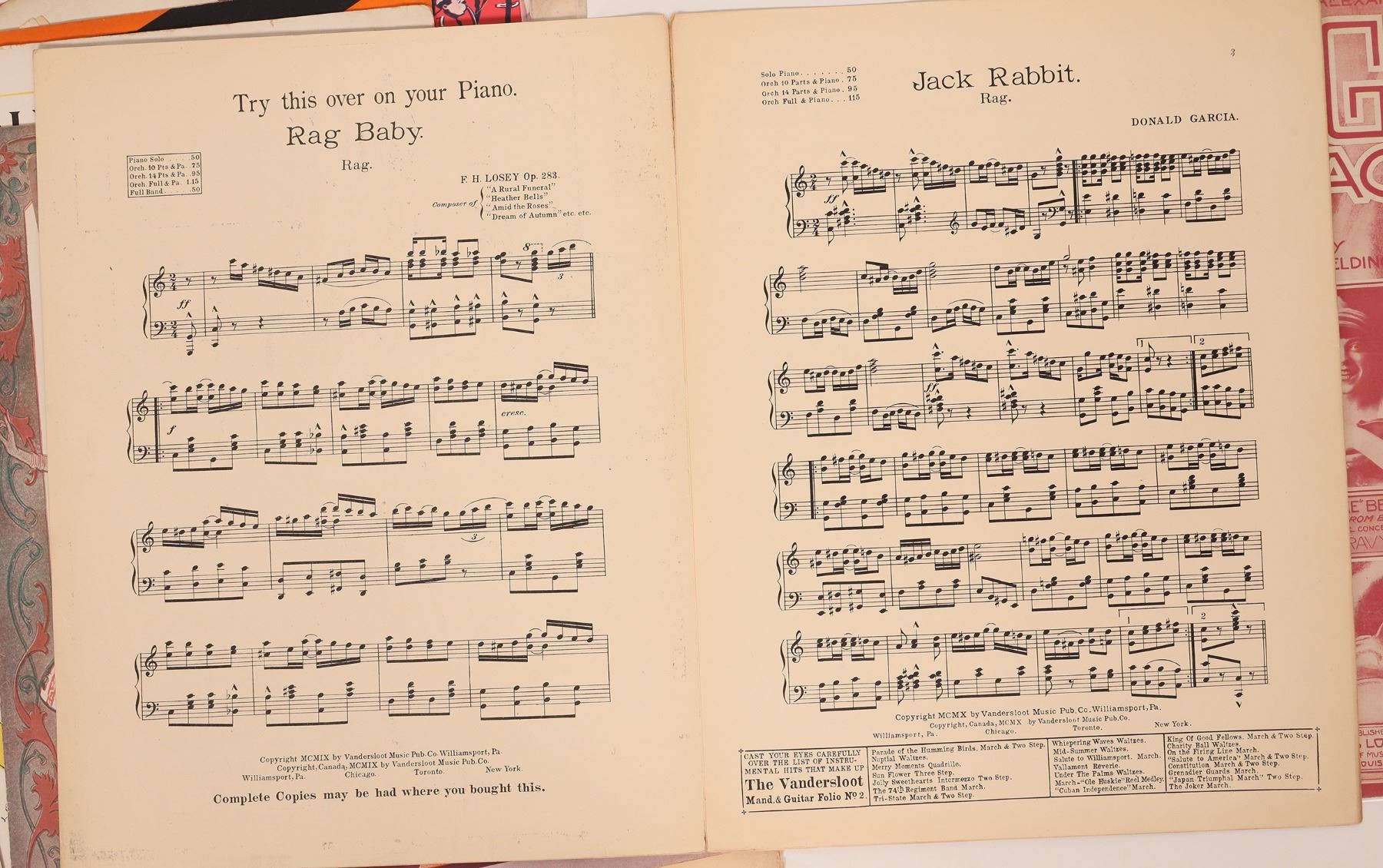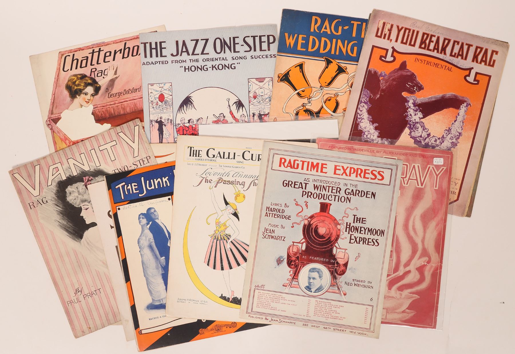Ragtime sheet music including titles like Jack Rabbit Rag, Little Fairy Fingers Waltz, Good Gravy Rag, Fred Heltman's Rag and more. All are in good condition and ready to play. Please see photos for more details.