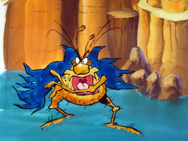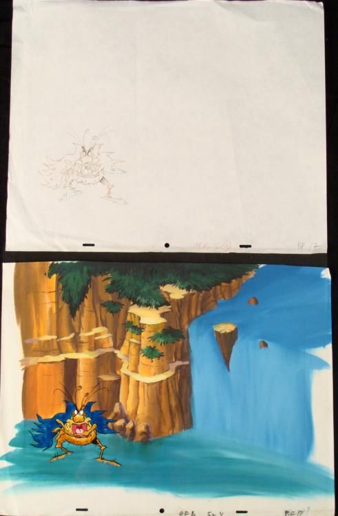 Raid Ant has been a family owned company since 1886 and been * killing bugs ever since then. Offered here is a original * production cel and matching drawing from the Raid Ant * Commercial. * * Attention all you bug haters out there... There is a war coming and you better be prepared!! * * * * <ul type="disc"> * Original Production Animated * Cel, Background and Drawing Original "rough" animation drawing, in black and oragne, * with notations in black and red. * Overall Size of Cel * and Drawing: 13 1/2" x 16 1/2" * Size of background: 12 3/4" x 16 3/4" * Very good condition * This is an original hand-painted cel set-up * was used in the production of the Raid Ant Commercial. Each * one-of-a-kind set-up represents a slight change in position of the * characters. When individually photographed and projected * in rapid succession, the * images appear to move. * * To create production cels, the original animator's drawing is * transferred onto an acetate cel (by hand-inking and/or photo copying). * The cel is then hand-painted on the reverse side. The background that is accompanying this cel is an original hand-painted background. * * * The cel, background and drawing are ready to be * matted and framed. The animator's * notations are at the bottom of all of them. * * *