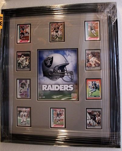 Framed licenced trading cards with giclee of Raiders. Dimenisons approx 20 x 24.