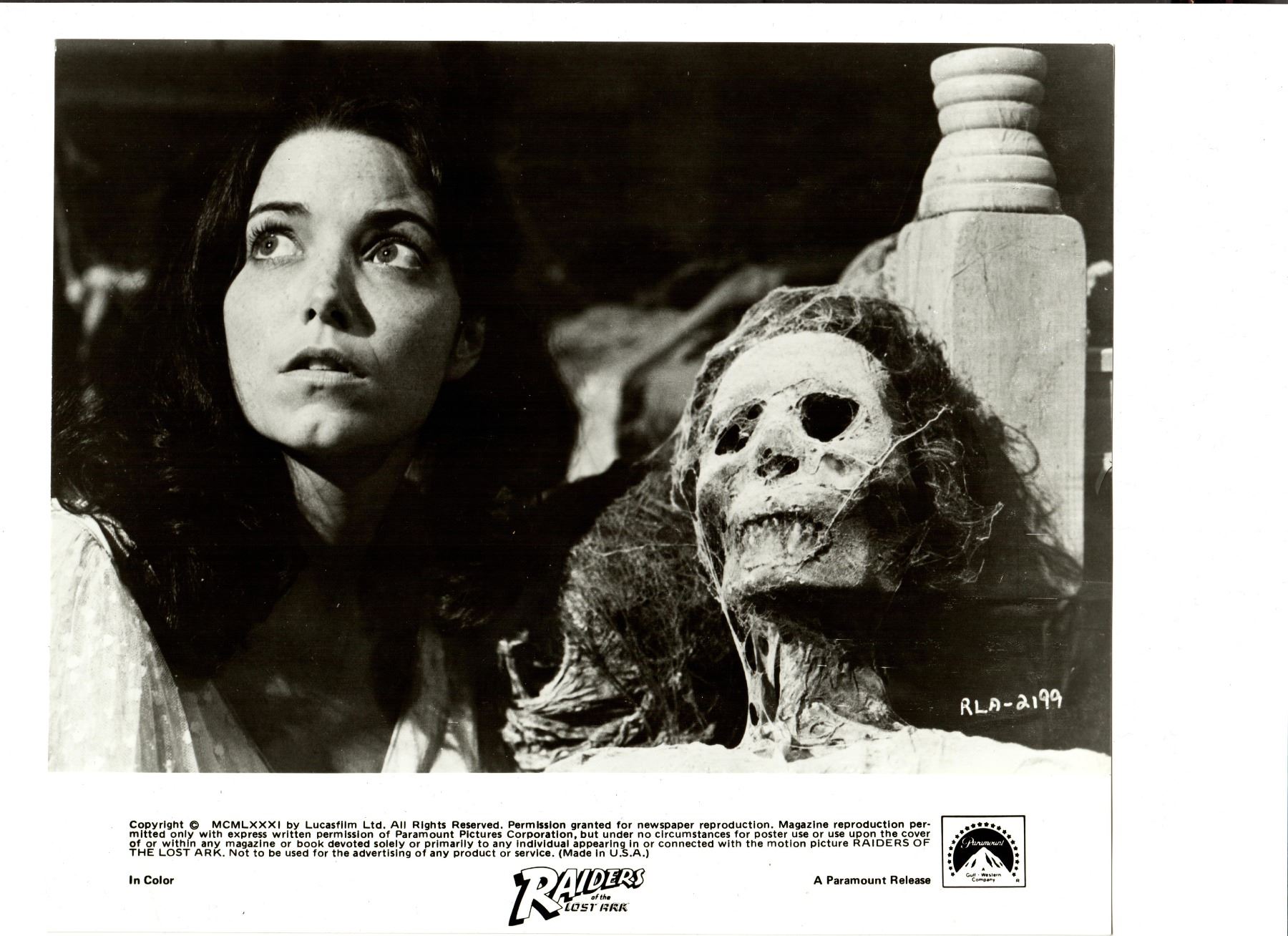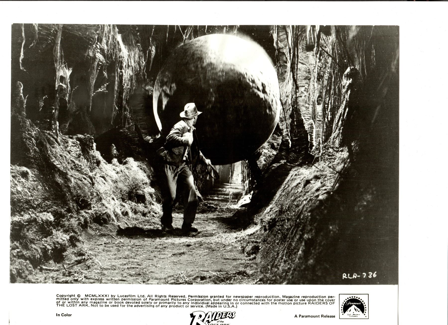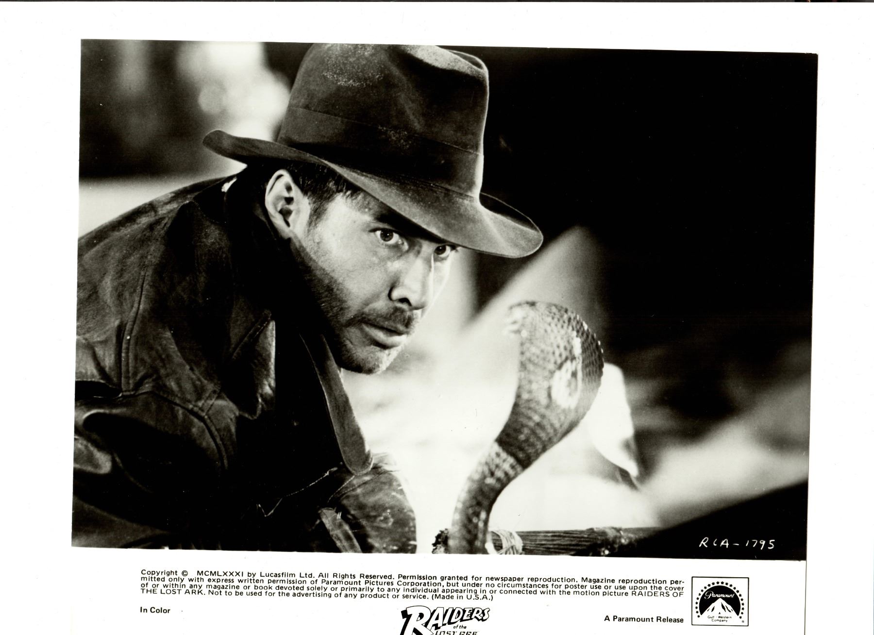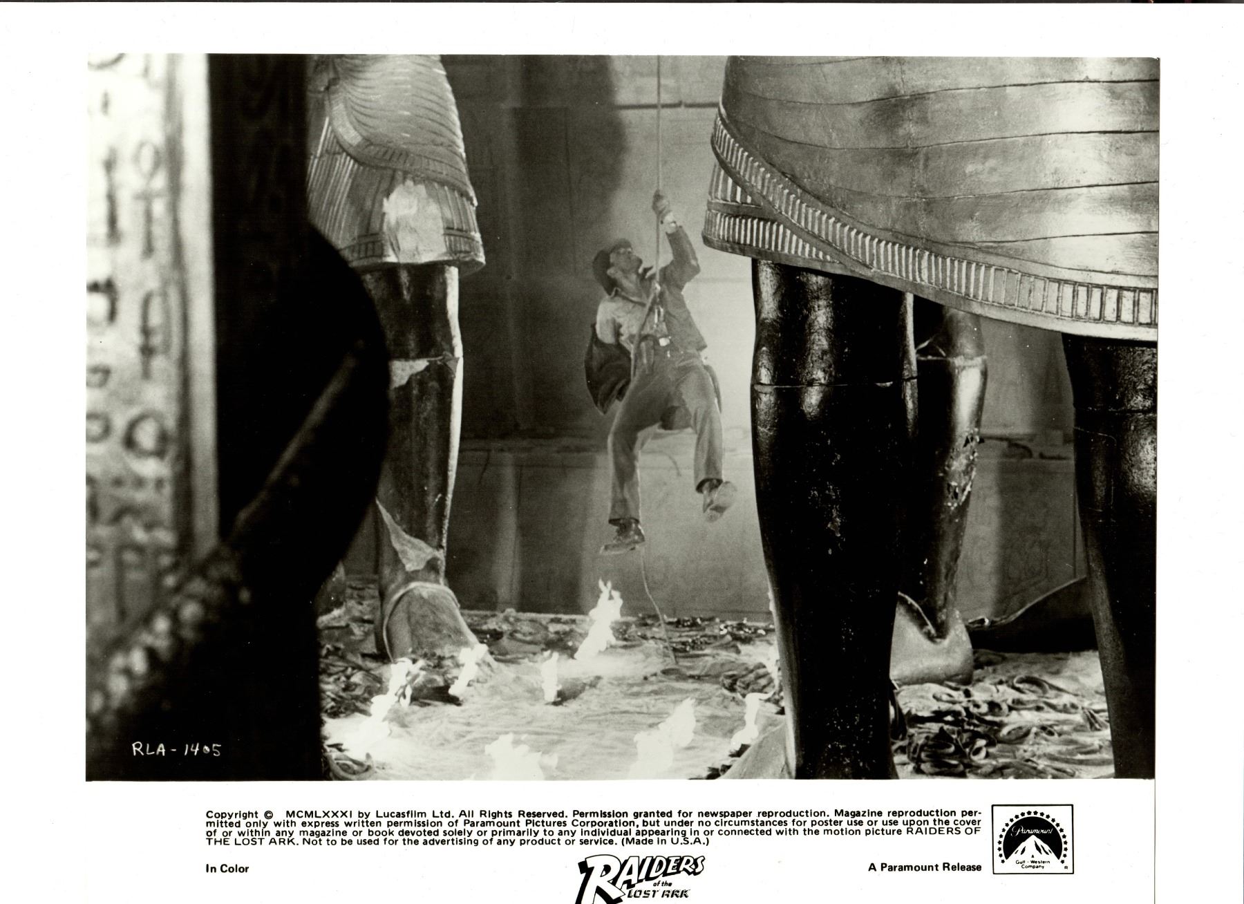 Collection of 21 original photographs from the classic 1981 adventure film Raiders of the Lost Ark. Epic tale in which an intrepid archaeologist tries to beat a band of Nazis to a unique religious relic which is central to their plans for world domination. Battling against a snake phobia and a vengeful ex-girlfriend, Indiana Jones is in constant peril, making hair's-breadth escapes at every turn in this celebration of the innocent adventure movies of an earlier era.