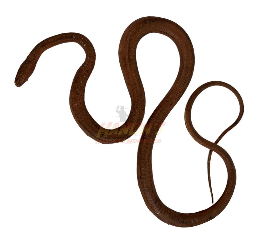 Original prop snake used in the Steven Spielberg directed action adventure film 'Raiders of the Lost Ark' (1981) from a story by George Lucas, where in 1936, archaeologist and adventurer Indiana Jones is hired by the U.S. government to find the Ark of the Covenant before Adolf Hitler's Nazis can obtain its awesome powers.