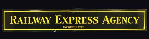 Railroad Express Agency Porcelain Sign. Edge chip at 7:00 otherwise excellent condition. 72 X 12 inches.