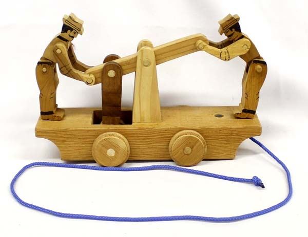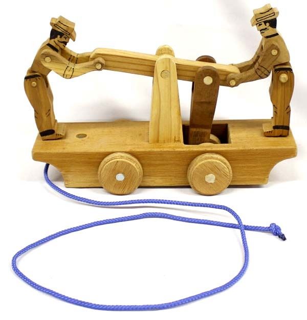 Lackawanna Railroad Handcar Wood Pull Toy by Jerry Podwil, measures 6'' x 11'' x 8''