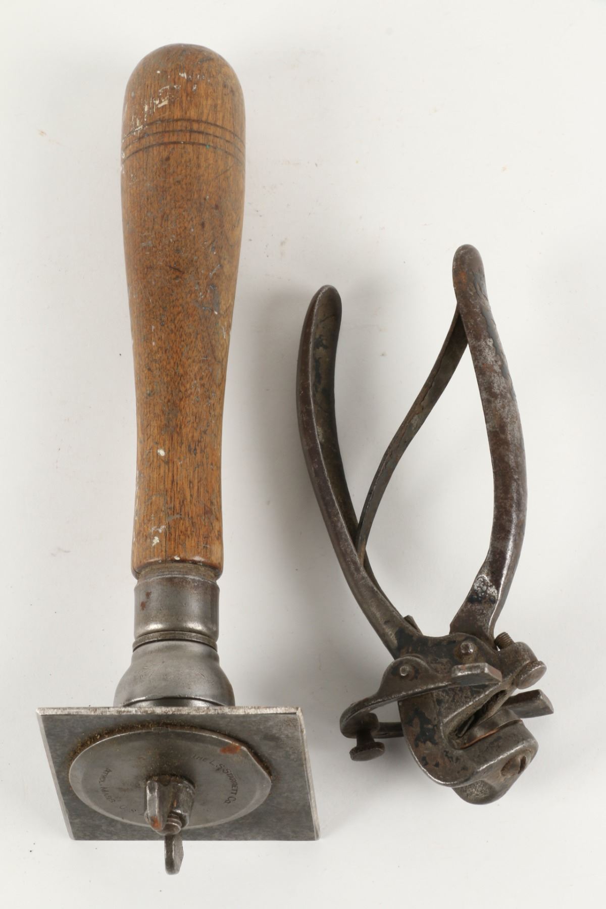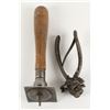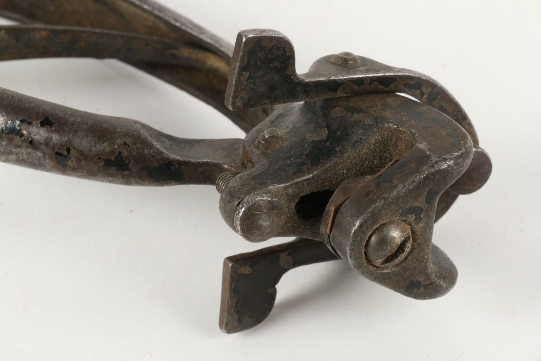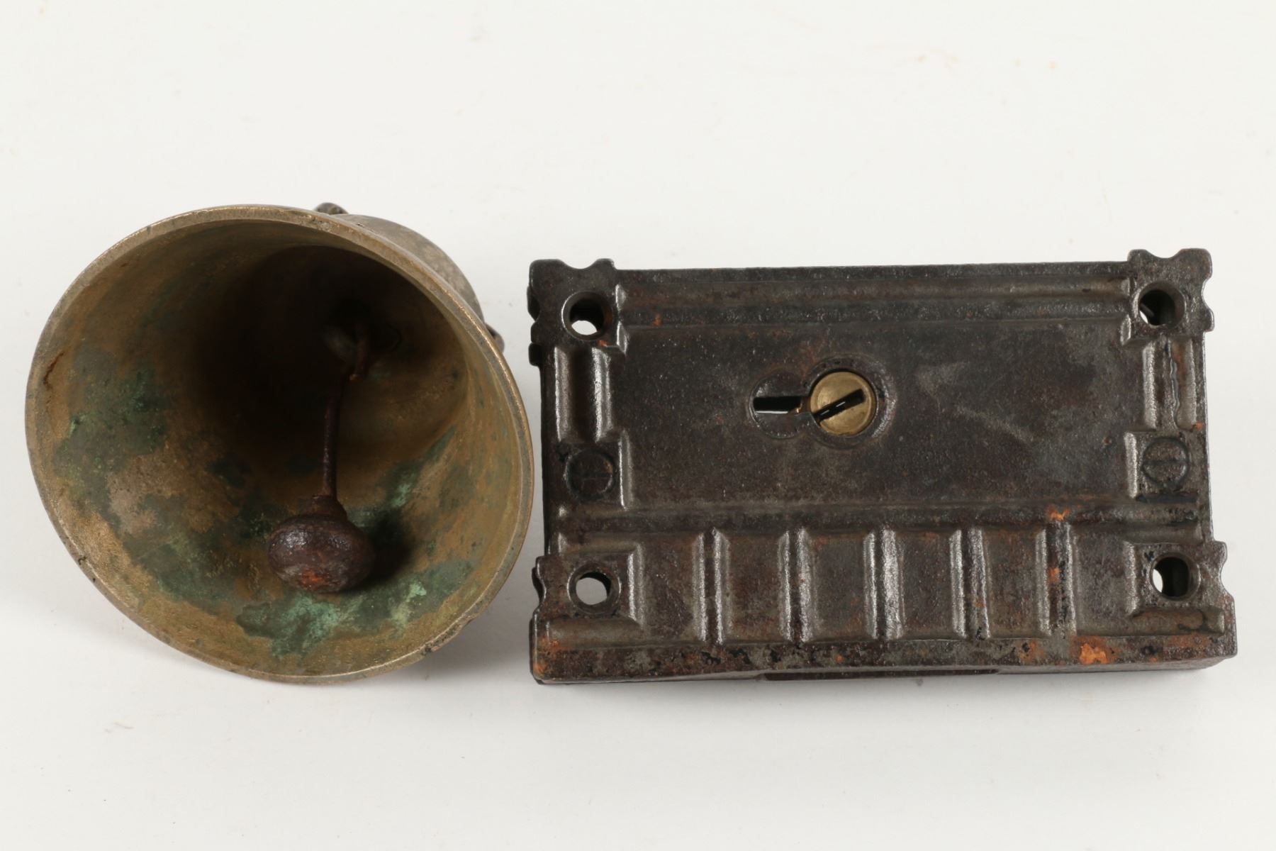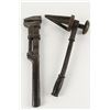 Six (6). Pipe wrench stamped’ ”Mfd. Under L. Cof...CPR (Canadian Pacific). Steam fitting tool. Saw blade hone. Blade scraper. Cast brass embossed bell. Cast lock embossed, “Peterboro”. CPR wrench 17”. Complete. $100-150.