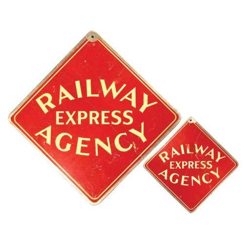 Railway Express Agency two sided calling card, hardboard. One side is good, other is stained. 19 X 19 inches.