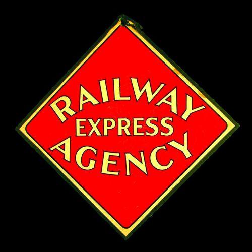 Railway Express Agency Calling Card, Two sided, top Corner is broken otherwise good condition, 13 3/4 inches square.
