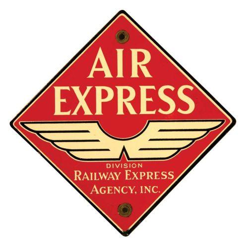 Air Express Division of Railway Express Agency Inc. Porcelain sign. Mint condition. 11 X 11 inches.