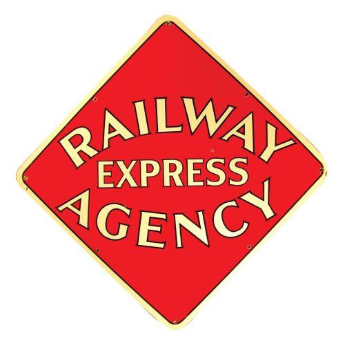 Railway Express Agency Die Cut Porcelain Sign. Minor chip at 5:00 otherwise near mint condition. 49 X 49 inches.
