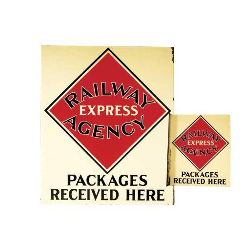 Railway Express Agency Packages Received Here Porcelain Two side flange sign. Excellent condition. 15 X 18 inches.