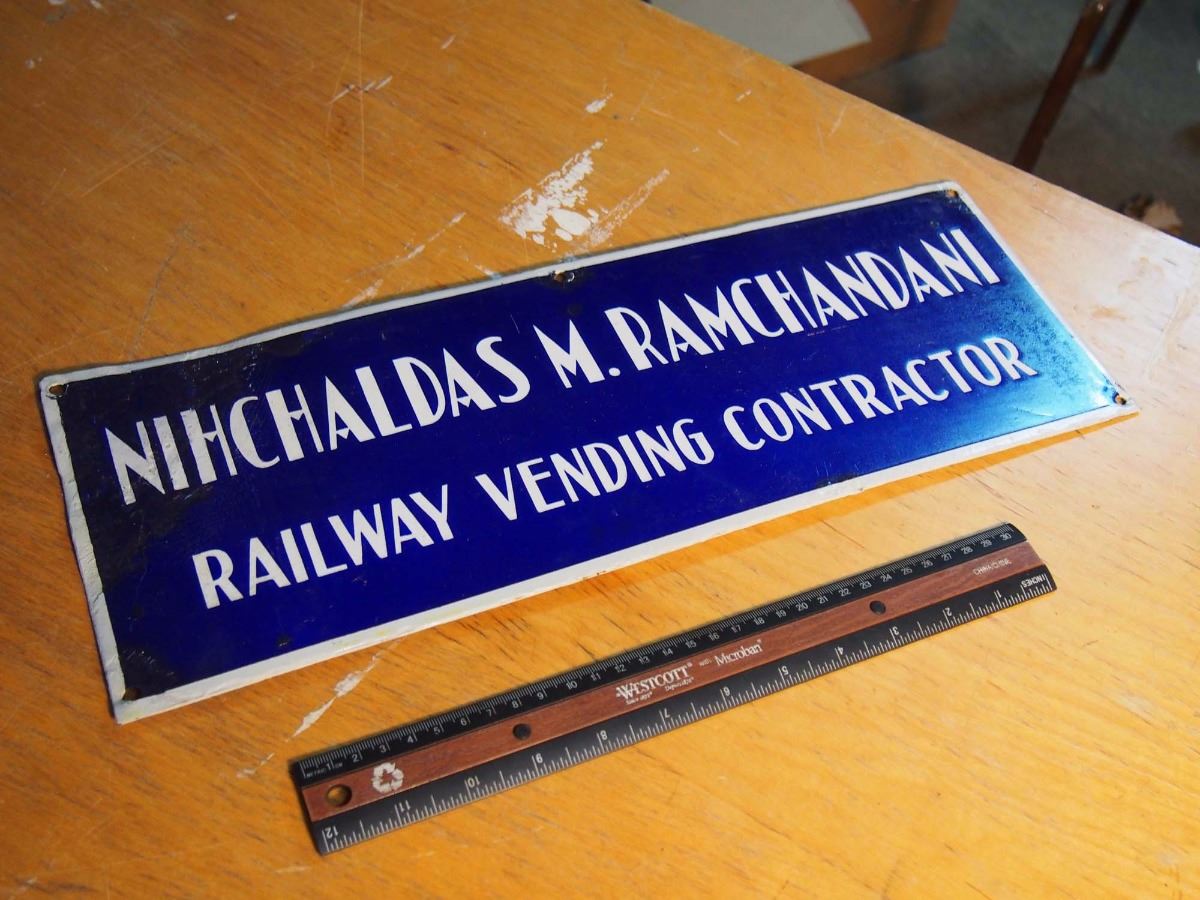 Railway Vending Contractor Porcelain Sign, Nihchaldas M. Ramchandani