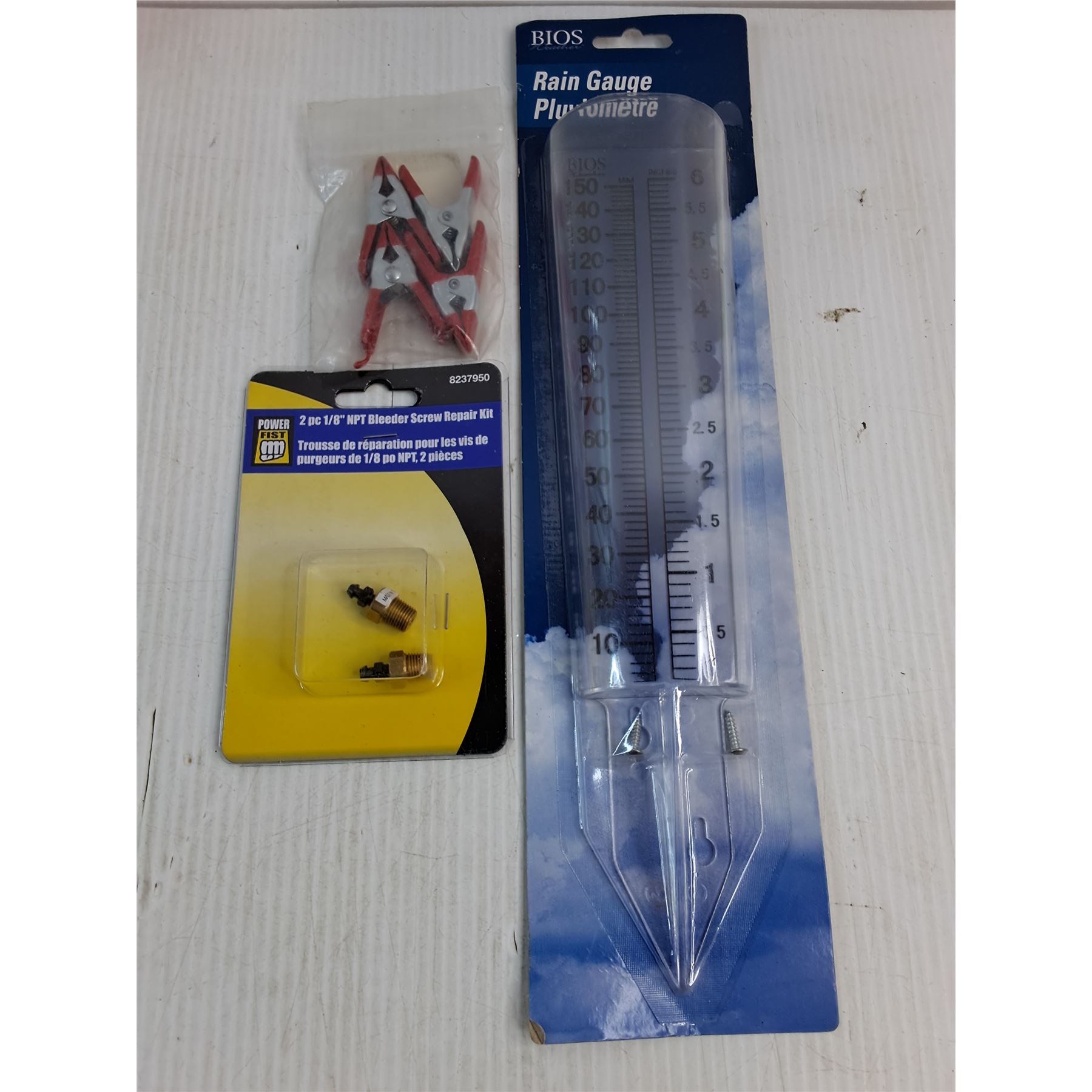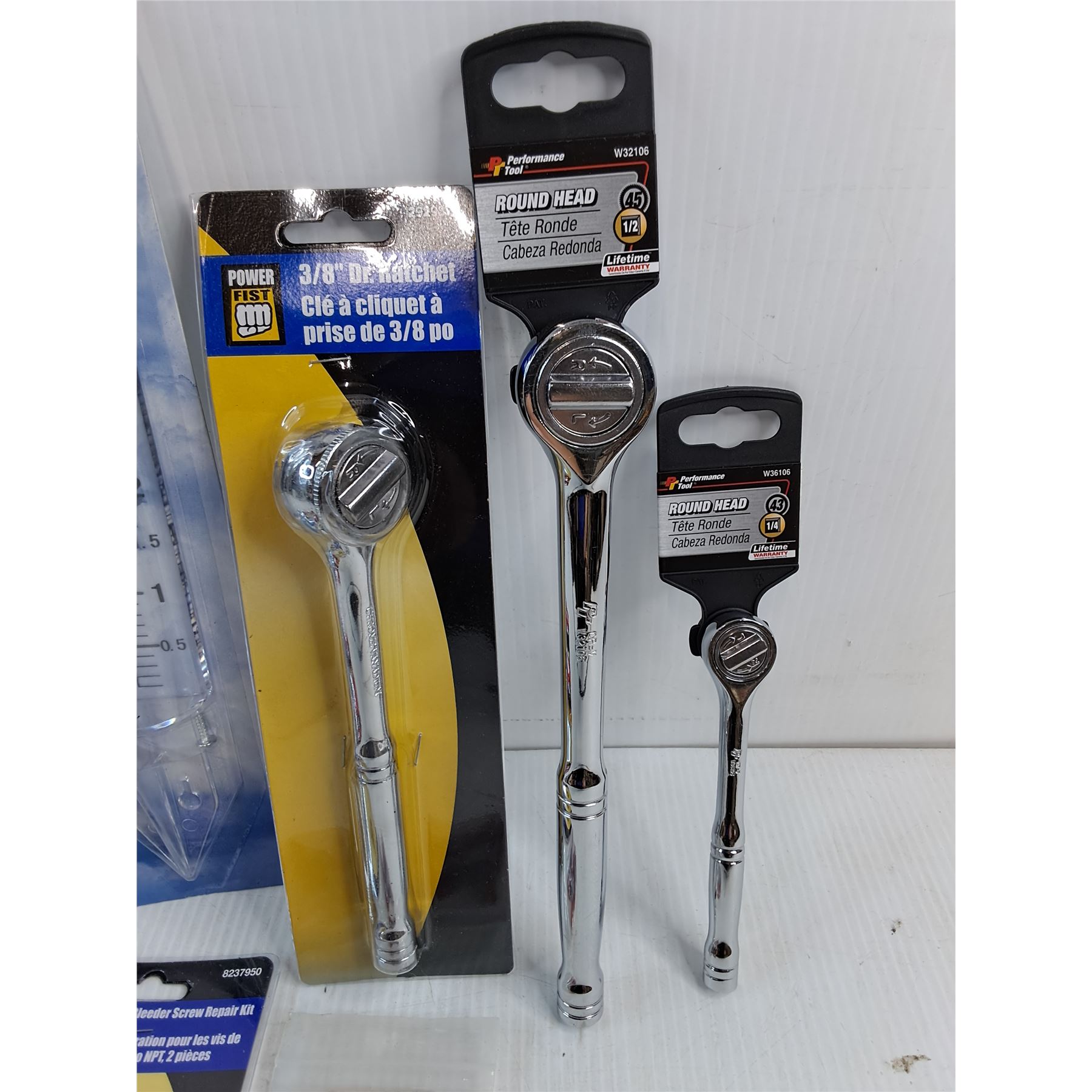 Rain Gauge,(3) Ratchets,(3) File Handle Kits and more in pictures