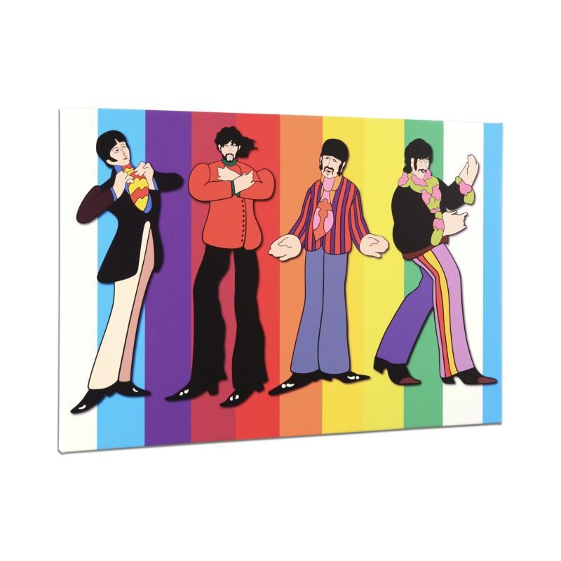 This is a limited edition giclee on gallery wrapped canvas featuring licensed animation from the 1968 Beatles film, "Rainbow Beatles". Includes Certificate of Authenticity. Measures approx. 36" x 24" (image).
