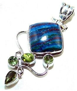 Silver and Rainbow Caliscilica & Peridot Pendant. Allow 6 to 8 weeks for delivery.