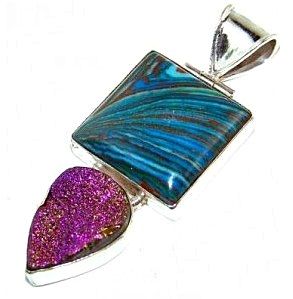 Silver and Rainbow Caliscilica & Titanium Drusy Pendant