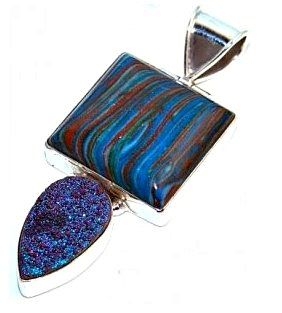 Silver and Rainbow Calsilica & Titanium Drusy Pendant