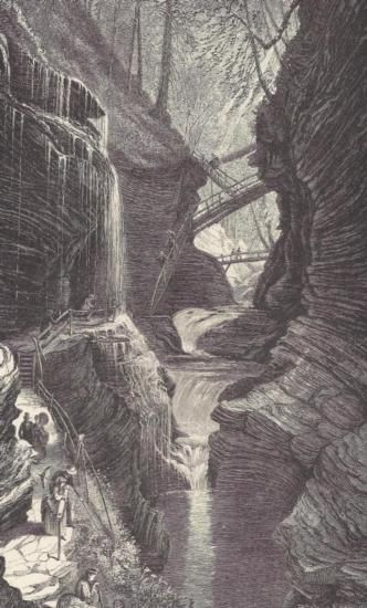 ~Rainbow Falls~ MATTED PRINT from a collection of rare prints. Each print from the collection were literally discovered in the attic of a South Carolina pre-civil war mansion. Each print was made by carving the scene, in reverse, into a wood block. Rare, fine condition and below market value with an estimate of $200 - $400. MWF2472