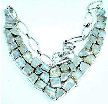 Silver and Rainbow Moonstone Necklace. Allow 6 to 8 weeks for delivery.