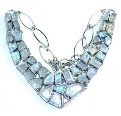 Silver and Rainbow Moonstone Necklace. Allow 6 to 8 weeks for delivery.