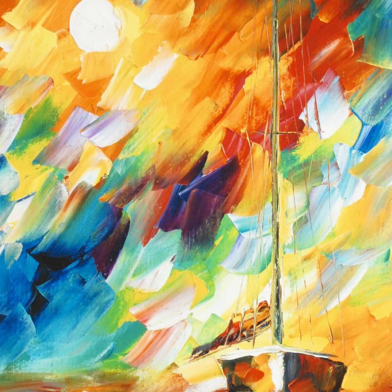 Leonid Afremov's masterful use of color and texture make his paintings unique collectibles that are sure to brighten any wall. "Rainbow Sky" is a limited edition giclee on stretched canvas, numbered in verso and bears Afremov's authorized signature. This piece comes gallery wrapped and ready to hang. Includes Certificate of Authenticity! Measures approx. 16" x 27.5" (image).
