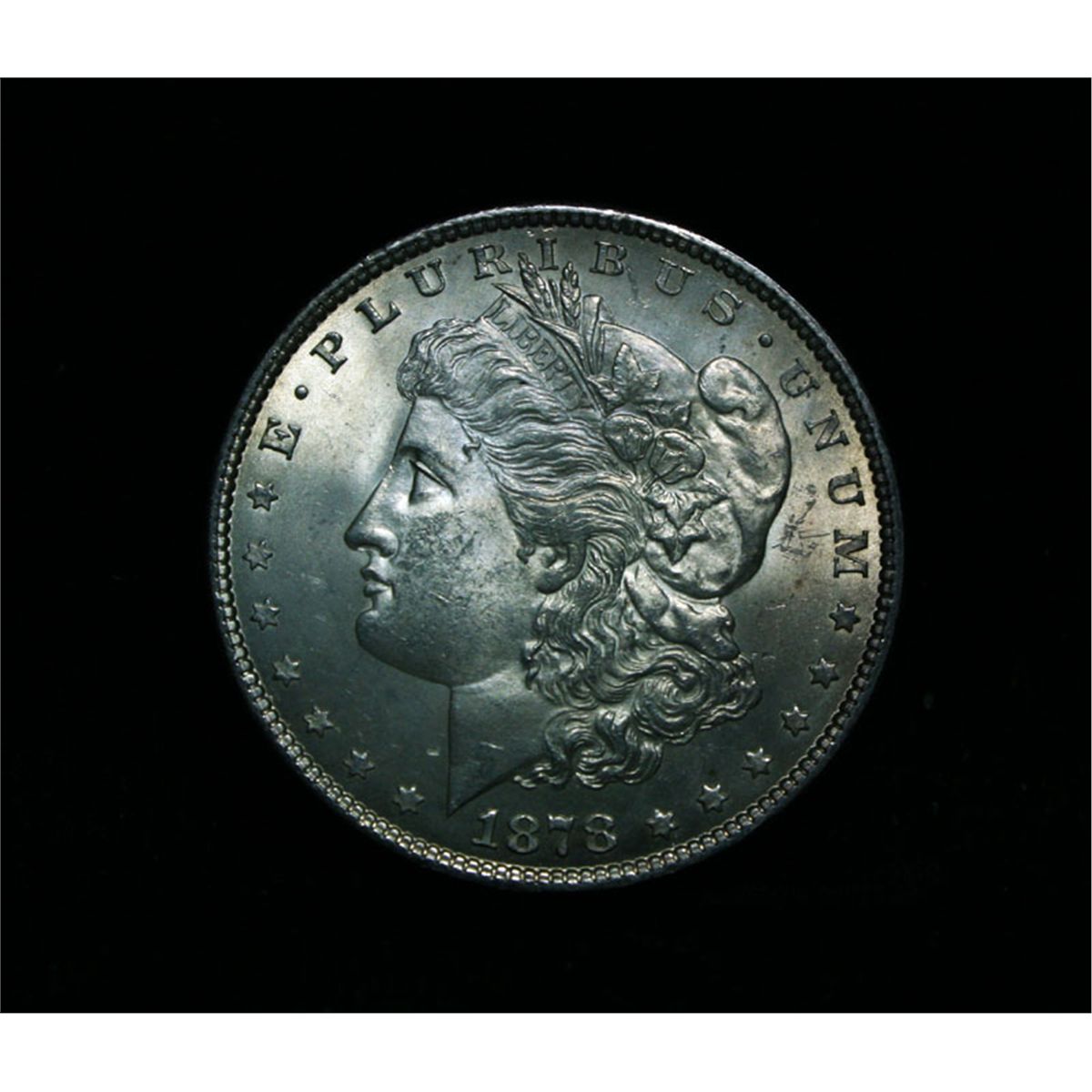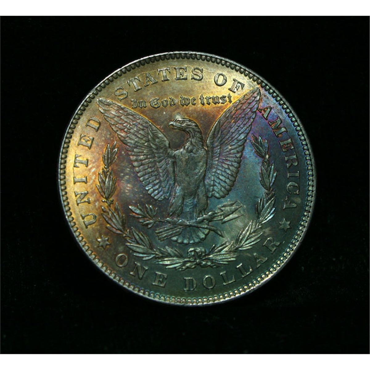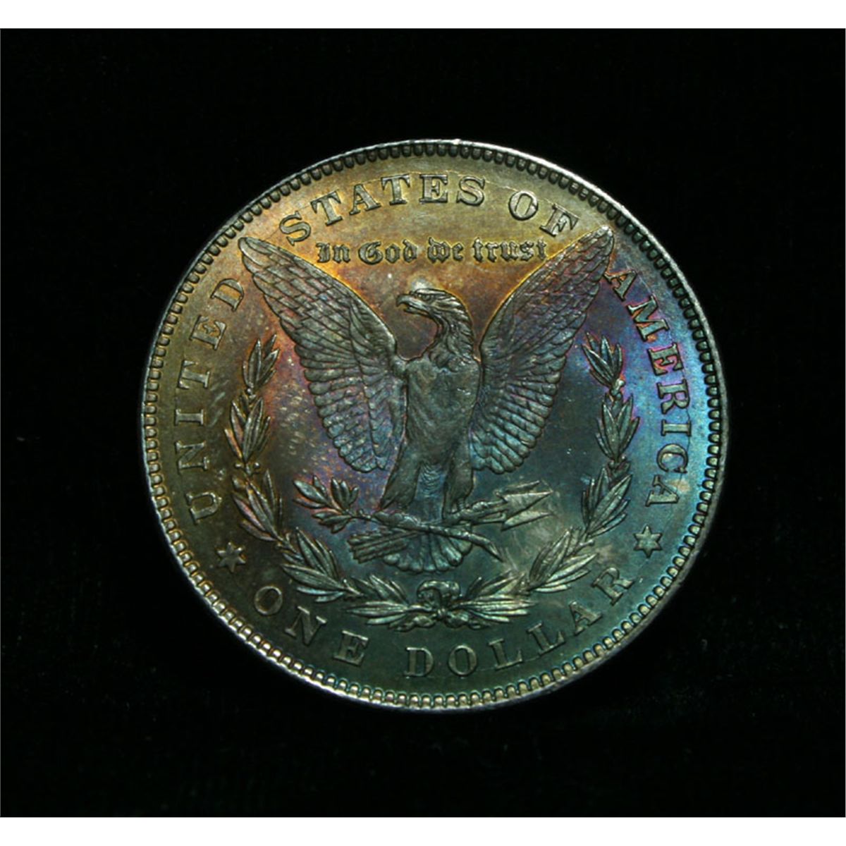 Stunning Rainbow toning across the reverse. Wonderful colors spanning the breadth of colors from yellow to violet. Vastly Superior eye appeal. Also a Great Variety. It is the 1878-p 7/8 TF, VAM 37. Coin World's Coin Values lists a non rainbow toned ms64 at $550 and ms65 at $3000. The Wholesale Greysheet lists a non rainbow toned ms64 at $410 and a non rainbow toned ms65 at $2000. Estimated Value $750