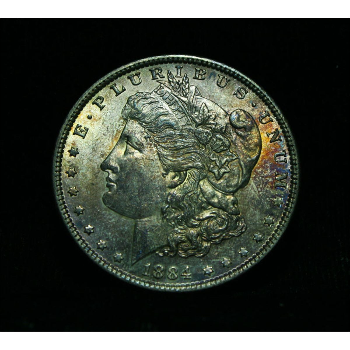 Really Great deep colors, Look at the pictures and see how beautiful. Mainly deep blues and some yellows reds and oranges, even some great purples on the reverse. Great!. An Untoned ms64 is listed at $108+ in the Wholesale Greysheet. Estimated Value $150