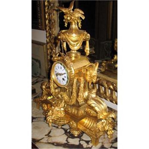 Magnificent and beautiful mantel clock. Gold medal winner.Very interesting anomaly: Maker's mark RM is upside down. Roman and arabic numerals. Beveled glass. Original gilt. Porcelain dial. Museum quality. Excellent workmanship.