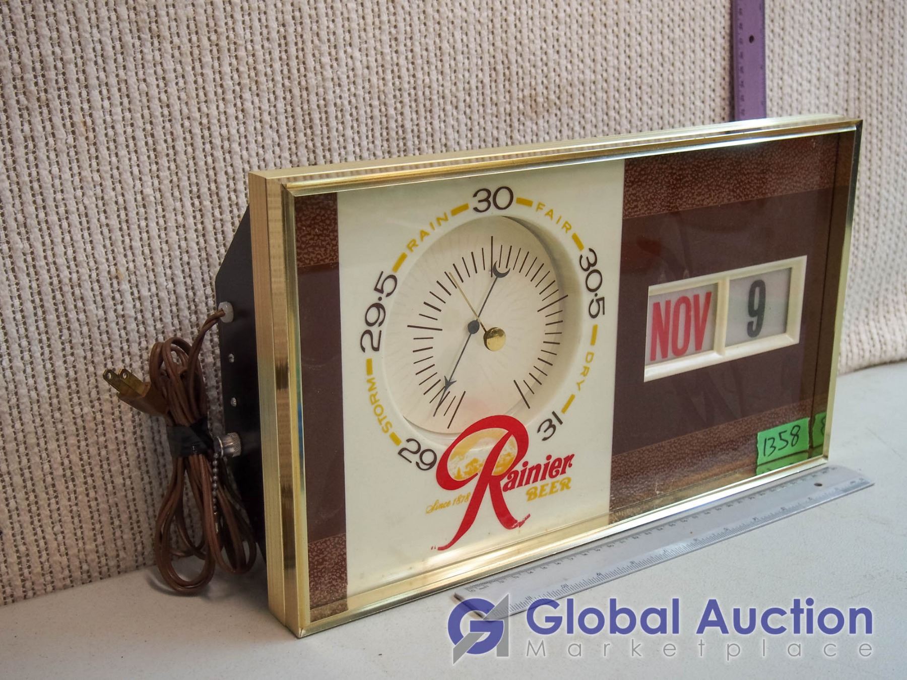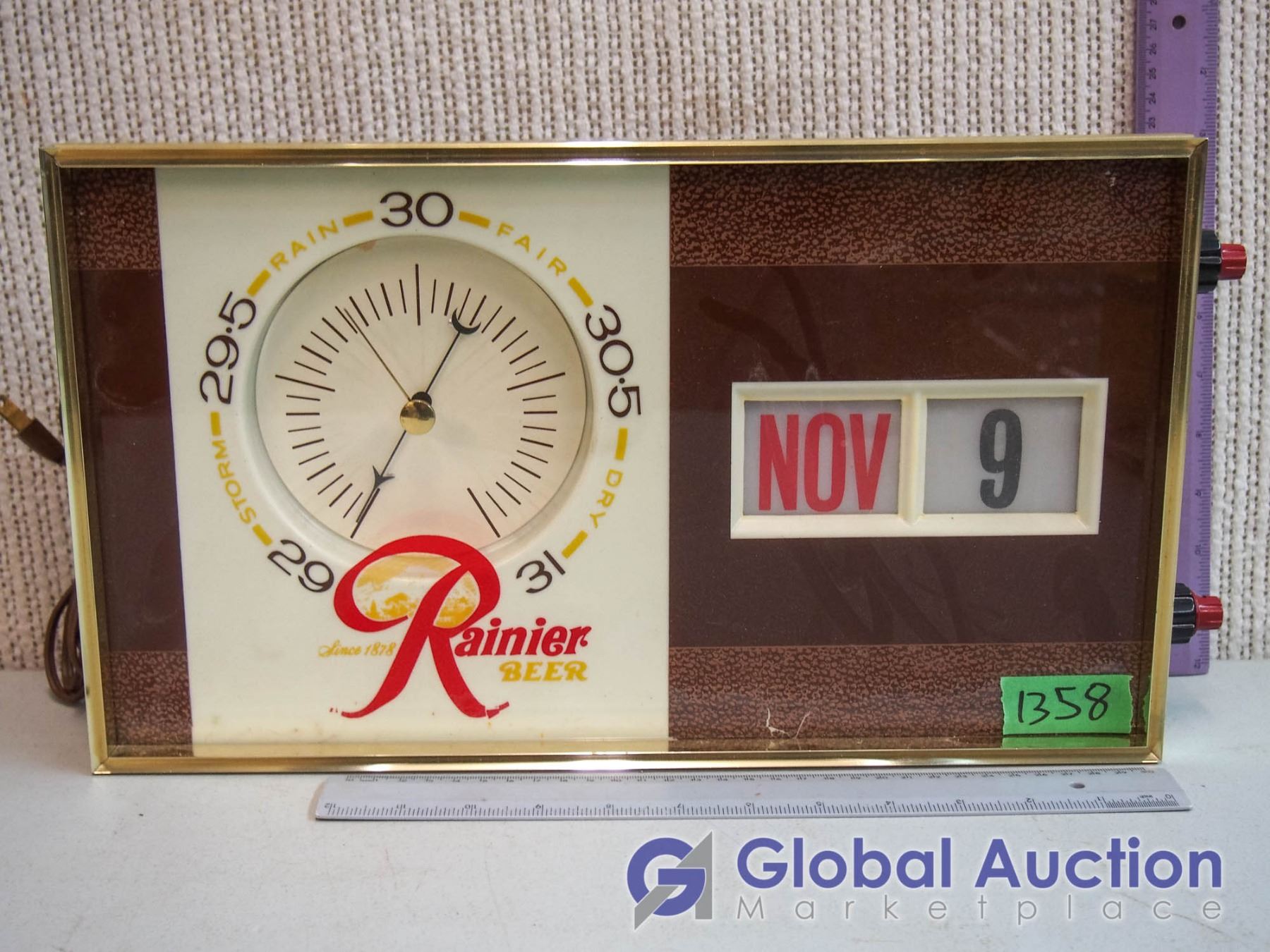 Rainier Beer Light Up Barometer Calendar Sign