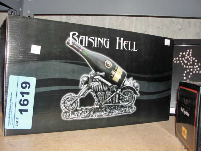 Raising hell motorcycle wine bottle holder