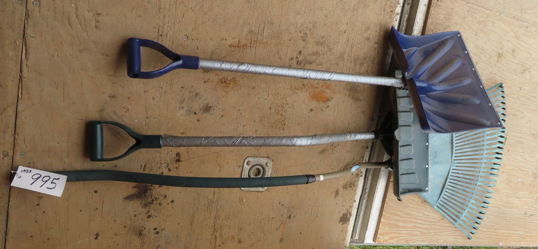 Rake & 2 shovels (duct tapped for better grip - handles are solid)