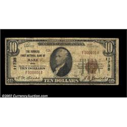 Rake, IA - $10 1929 Ty. 1 The Farmers First NB Ch. # 11735A circulated serial number 1 example from.