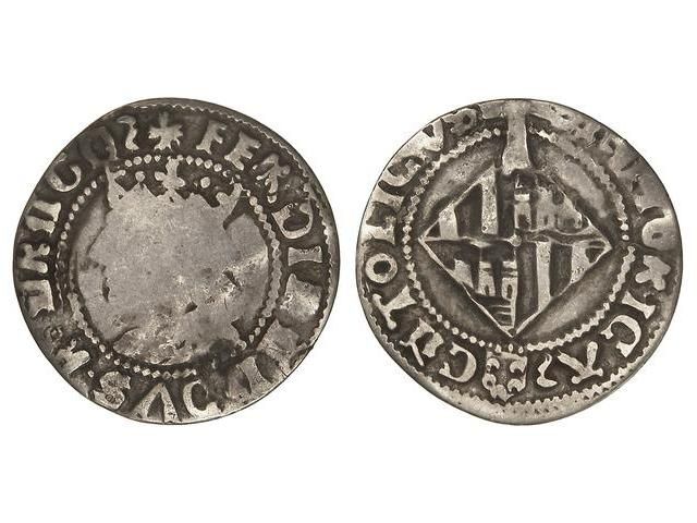 Ral. FERRAN II. MALLORCA. Anv.: ¶FERDINANDVS·R·ARAGO3. Busto a izquierda. Rev.: ¶MAIORICA3 (escudito con creciente) CATOLICVS. 1,85 grs. AR. Cru.VS-1182 var. leyenda. BC+/MBC-.