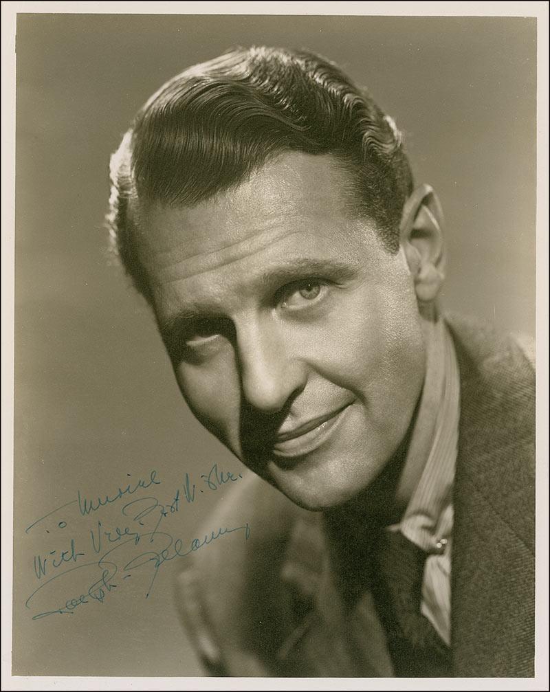 Vintage matte-finish 8 x 10 head-and-shoulders photo, signed and inscribed in fountain pen “To Mildred, With Very Best Wishes, Ralph Bellamy.” In fine condition with rippling to the right edge.