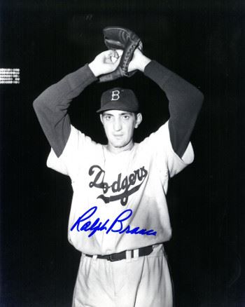 Ralpha Branca was signed as a free agent by the Brooklyn Dodgers in 1943. He debuted on June 12, 1944, with the Dodgers, and put up a 3.04 earned run average (ERA) in 10923 innings pitched in his rookie year. A three-time All-Star, he won 80 games for the Dodgers with a career-high 21 wins in 1947. Ralph Branca has hand signed this Brooklyn Dodgers 8x10 Photo. Certificate of Authenticity from Athlon Sports.