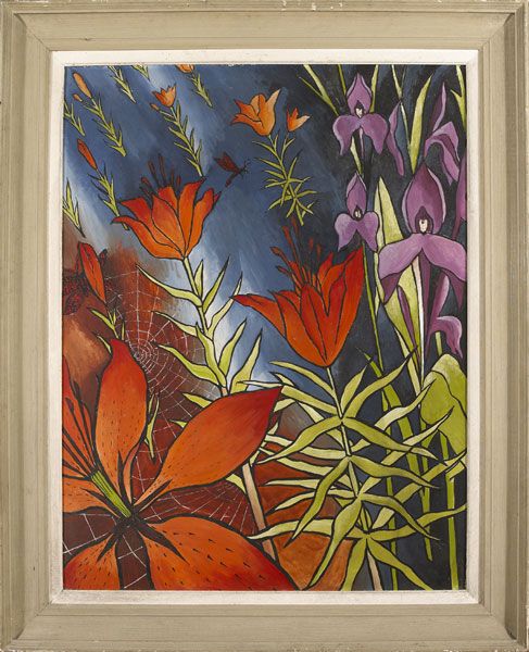 Exhibited: Irish Exhibition of Living Art, Dublin, 16 August - 10 September, 1950, catalogue no. 14 as Lilies and Roscoeas [£30-0-0]