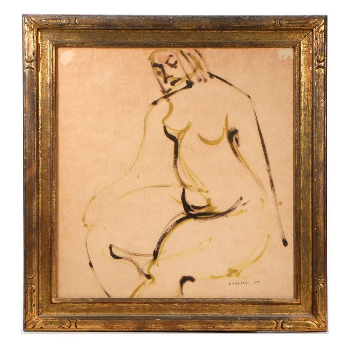 Artist: Ralph DuCasse (1916-2003). Title/Description: Nude. Signature: Signed lower right. Date Created: 1957. Medium/Ground: Watercolors on paper. Size: 20in x 19in; 24 1/2in x 23 1/2in (frame). Condition: Good From the Family of Xavier Martinez (1869-1943), Elsie Whitaker Martinez (1890-1984), and Micaela Martinez DuCasse (1913-1989).