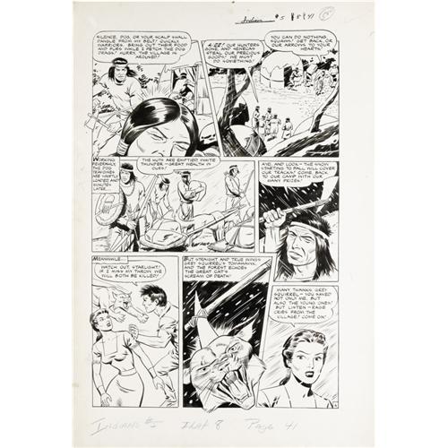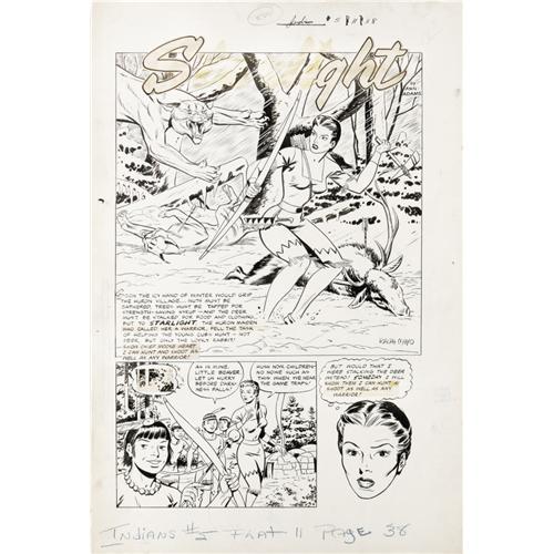 <B>Ralph Mayo - Indians #5, Complete 10-page "Starlight" Story Original Art (Fiction House, 1951).</B></I> The Huron warrior maiden, Starlight, and Grey Squirrel find danger and adventure facing enemy Senecas, in this ten-page tale. Each page has an image area of 12" x 18". There is some paper tanning, glue staining on page one (from missing paste-up art), and some blue pencil editorial markings; otherwise the pages average in Very Good condition. <I>From the John McLaughlin Collection.</B></I><BR><BR><b>Shipping:</b> Large Flat (<a target="_blank" href="http://www.heritageauctions.com/common/shipping.php">view shipping information</a>)