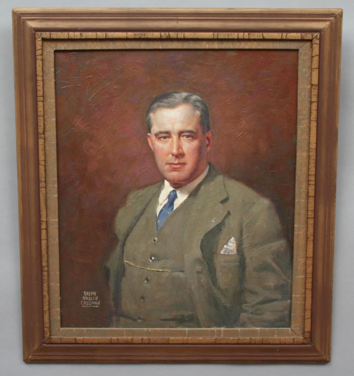 Ralph Pallen Coleman (American, 1892-1968), "Portrait of a Gentleman", oil on artists board, signed lower left, framed. 23 3/4" x 20" (board). 30" x 26 1/2" (framed). Condition: very good, no damage or repair,.