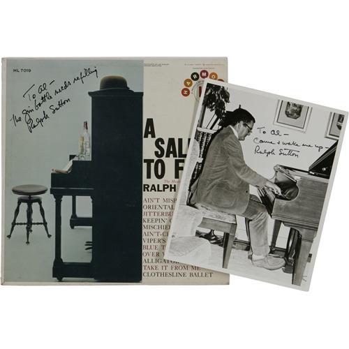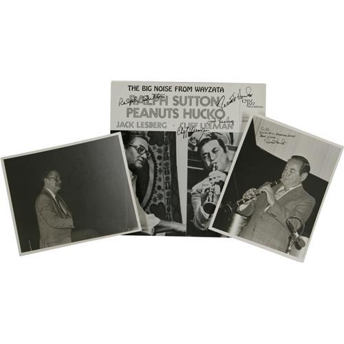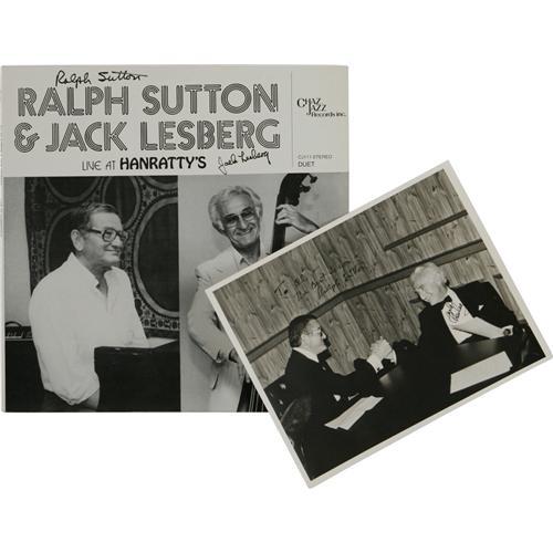 <B>Ralph Sutton Autograph Record and Photo Group of 7.</B></I> "Live At Hanratty's" autographed by Ralph Sutton and Jack Lesberg (with autograph photo); "The Big Noise From Wayzata" autographed by Ralph Sutton, Jack Lesberg, Cliff Leeman, and Peanuts Hucko (with 2 autographed photos), and "A Salute To Fats" autographed by Ralph Sutton (with autographed photo). <I>From the Al White Autograph Archive.</B></I><BR><BR><b>Shipping:</b> Recordings (<a target="_blank" href="http://www.heritageauctions.com/common/shipping.php">view shipping information</a>)