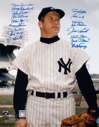 Mickey Mantle was first baseman for the New York Yankees for 18 seasons, from 1951 through 1968. Mantle is regarded by many to be the greatest switch hitter of all time. This 16x20 Photo is signed by 17 of Mickey Mantle's teammates (several deceased) with the Yankees including: Johnny Blanchard, Ryne Duren, Mel Stottlemyre, Mike Hegan, Moose Skowron, Bobby Richardson, Jim Bouton, Luis Arroyo, Roy White, Tony Kubek, Bob Turley, Bob Hale, Bill Gardner, Jim Coates, Hector Lopez, Jack Cullen and Ralph Terry. MAB Hologram and Certificate of Authenticity from Athlon Sports.