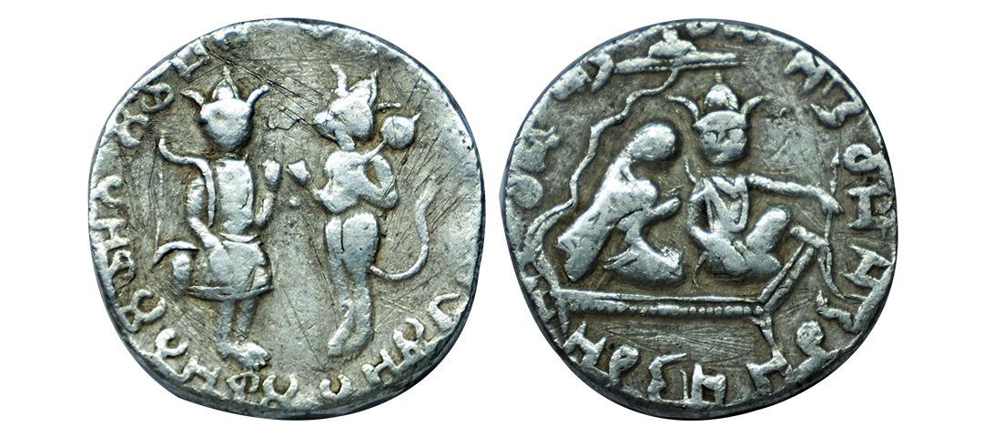Ram Darbar, Temple Token, 11.54 gms, Obv. Lord & hanuman facing each other, Rev. throne with Lord Ram & Sita, very fine, very scarce