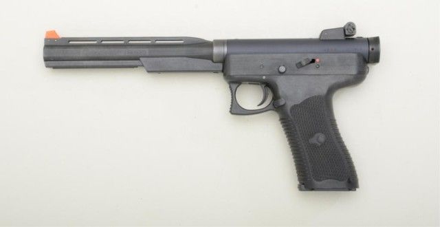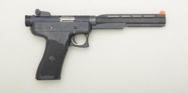 Ram-Line semi-auto target pistol, .22LR cal., 8” barrel, mat black finish, polymer frame with integral grips, #P8-25-10416. This gun is in overall excellent condition showing little use, excellent barrel, crisp action,factory manuals and advertisers and accompanied by a hard plastic carry case. Est.: $150-$250.
