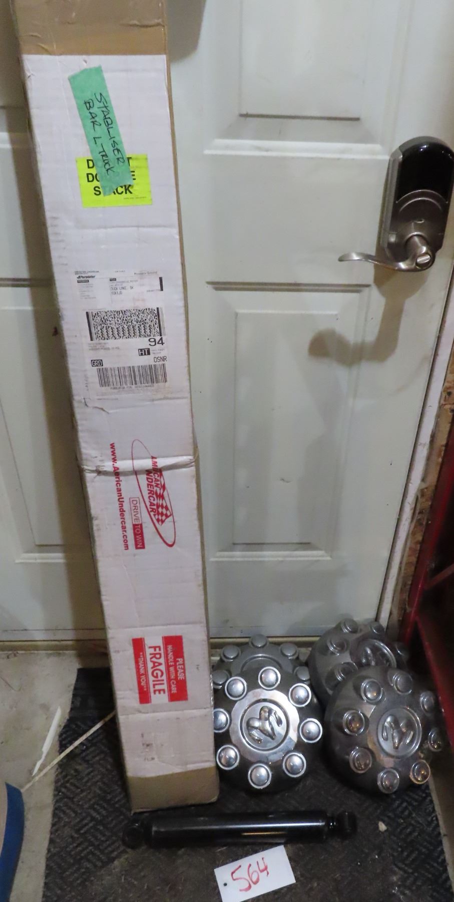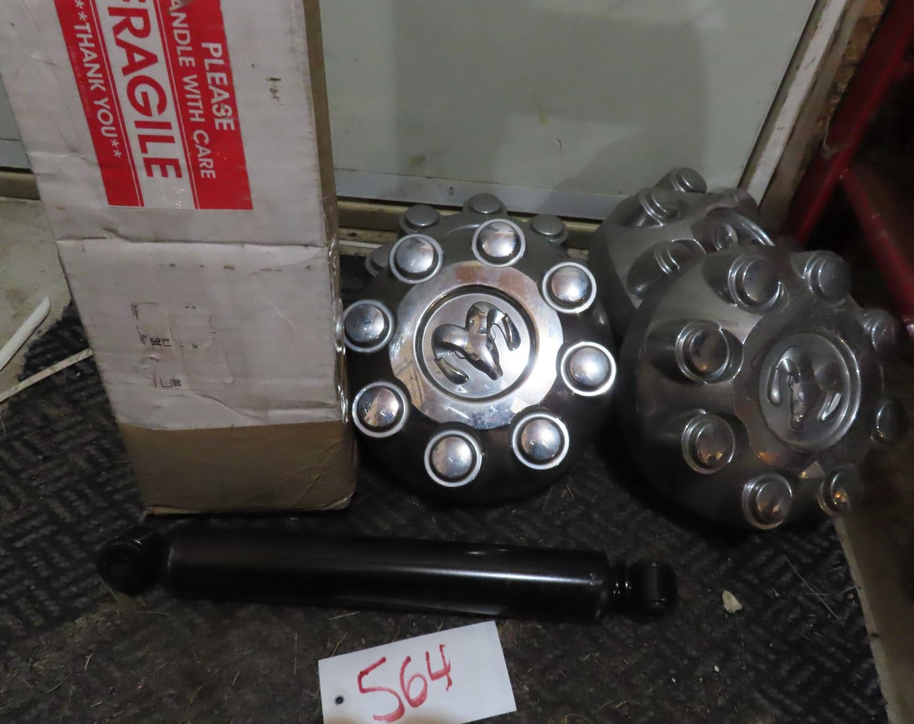 Ram stabilizer bar, 4 hub caps + Unlabeled shock