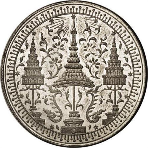 <B>Rama IV White Metal Pattern 2 Baht ND (c. 1863),reeded edge,</B></I> KM-Pn14?, lustrous UNC with a noticeable rim bump on the obverse and reverse. Extremely rare, and the only other sale that we can trace of a similar piece is in the Spink-Taise sale of the Irving Goodman Collection in Singapore, in 1988, lot 42. The Krause catalog is rather vague on Thailand patterns and does not mention the reeded edge, white metal 2 Baht. We assume that PN14 is this piece.<BR><I>From the Monedas Oro Collection</B></I><BR><BR><b>Shipping:</b> Coin/Currency (<a target="_blank" href="http://www.heritageauctions.com/common/shipping.php">view shipping information</a>)