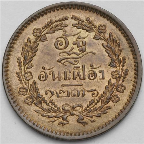 <B>Rama V 1 Att CS 1236 (1874),</B></I> KM-Y18, a second Choice UNC with abundant remaining luster.