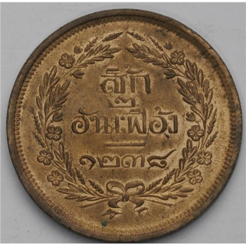 <B>Rama V 4 Att CS 1238 (1876),</B></I> KM-Y20, Choice UNC with nearly full mint-red color. Very rare in this condition.