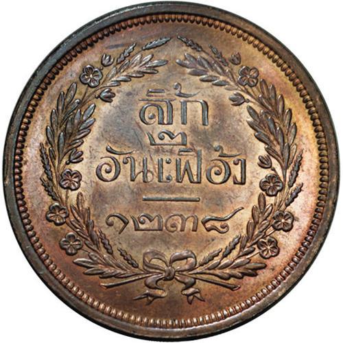 <B>Rama V 4 Att CS 1238 (1876),</B></I> KM-Y20, iridescent UNC with no egregious flaws. Abundant original mint color remains and this large one-year type is rare in this condition.