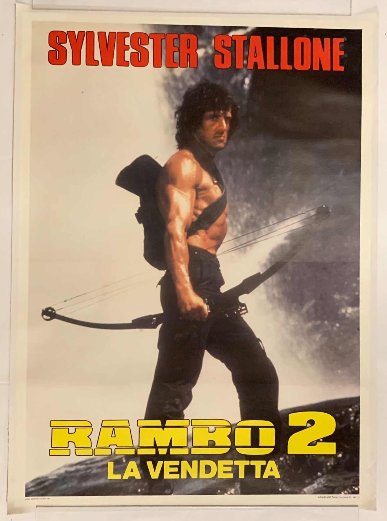 Rambo: First Blood Part II (Tri-Star, 1985). Italian 2 - Folio (39" X 55"). Action. Folded. Starring Sylvester Stallone, Richard Crenna, Charles Napier, Steven Berkoff, Julia Nickson, Martin Kove, George Cheung, and Andy Wood. Directed by George P. Cosmatos. An Unrestored poster in very good condition.